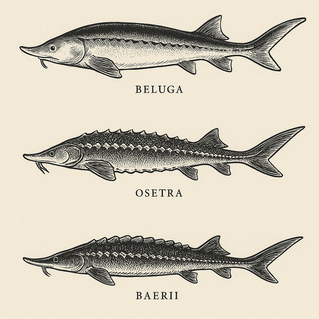 • Beluga Caviar (Huso huso) — premium sturgeon caviar imported from Europe
